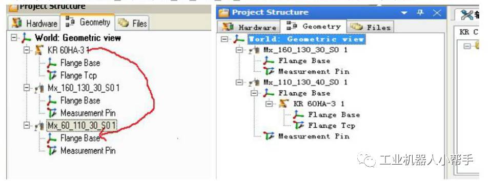 添加完后把KR60HA_3拖拽到Mx_110_130_40_S0的FLANGE BASE下面